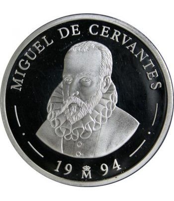 En el anverso Don Quijote a caballo y Sancho Panza montado en burro.