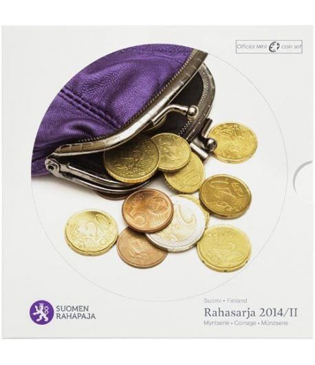 La cartera contiene 9 monedas. Las 7 monedas corrientes de euro 2014 (excepto los 2 euros) y las 2 monedas conmemorativas de 2 euros, dedicadas al 100 Aniversario del nacimiento de Tove Jansson y al 100 Aniversario del Nacimiento Ilmari Tapiovaara.