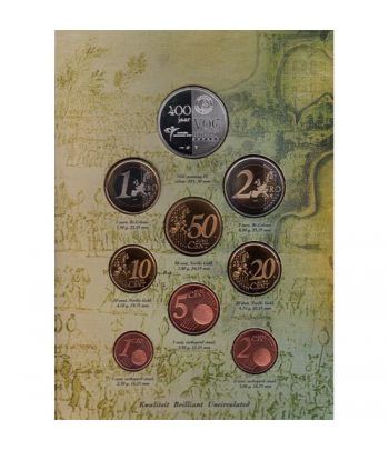 Cartera Oficial conteniendo las 8 monedas Euro de HOLANDA 2.002 Sin Circular y una Medalla de plata 925 milésimas.