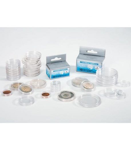 LEUCHTTURM Capsulas para monedas 42 mm. (10 unidades). Cápsulas de monedas diámetro interior 42 mm. Con un práctico canto para cogerlas fácilmente, resistentes a las ralladuras, diámetro exterior 48 mm, paq. de 10. Ref. 318006