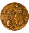 Medalla acuñada en 1987, con motivo de los 50 años de sacerdocio del cardenal Agostino Casaroli. A la derecha, el escudo de armas del cardenal y al fondo la iglesia de San Juan Bautista en Castel San Giovanni, lugar de nacimiento del Cardenal y al otro lado, la Plaza de San Pedro en Roma. Composición: Bronce. Diámetro: 60 mm.