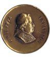 Medalla papal de bronce. Anverso: busto destocado del Pontífice de perfil a la derecha, leyenda PIO IX PAPA / INFALIBLE. Reverso: corazón de Jesús dentro de corona de espinas sobre cruz radiante, leyenda 1ª ROMERÍA ESPAÑOLA AL VATICANO: 16 OCTUBRE 1876. Diámetro: 34 mm.