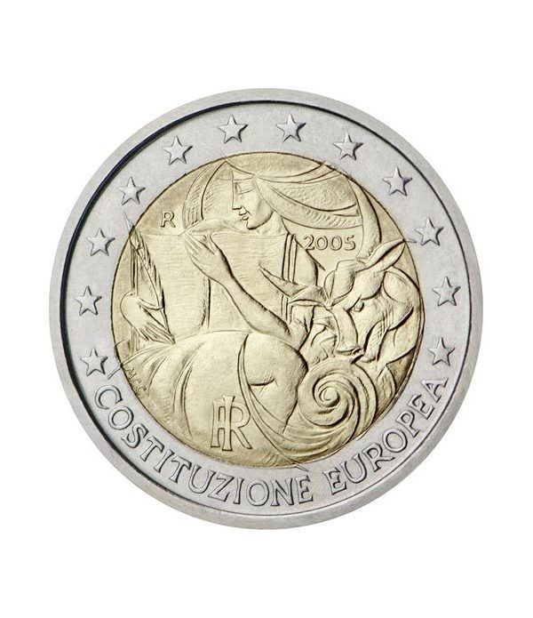 En la parte interna de la moneda figura una representación de Europa y de Zeus convertido en toro. Europa sostiene una pluma y el texto de la Constitución Europea. A la izquierda de la imagen aparece la marca de ceca R. Las iniciales de la grabadora, MCC (Maria Carmela Colaneri) figuran en la parte inferior izquierda. El año aparece en la parte superior derecha de la ilustración, sobre la cabeza del toro. En la parte inferior aparece el monograma de la República Italiana, RI. Las palabras COSTITUZIONE EUROPEA (“CONSTITUCIÓN EUROPEA”) forman un semicírculo en la parte inferior del anillo exterior. En la mitad superior, aparecen las doce estrellas de la bandera europea.