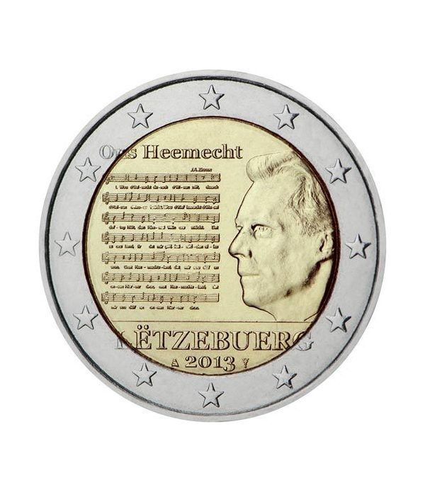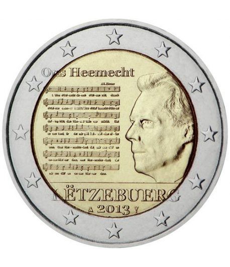 El centro de la moneda muestra, a la derecha, la efigie de Su Alteza Real el gran duque Enrique, mirando a la izquierda, y a la izquierda, la notación musical y el texto del himno nacional. En la parte superior de la parte central figura el texto «Ons Heemecht» y en la parte inferior, el nombre del país emisor «LËTZEBUERG» y el año «2013»