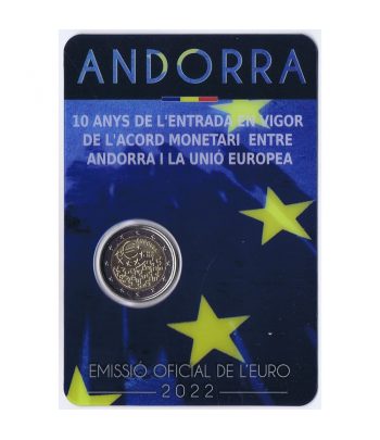 Moneda de 2 euros dedicada a los "10 anys de l'Entrada en vigor de l'acord monetari entre Andorra i La Unió Europea".