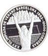 Moneda de plata de Nicaragua del año 1990, conmemorativa de las Olimpiadas de Verano de Barcelona 1992, Tenis. Composición: Plata 999 milésimas. Peso: 20 gramos. Diámetro: 36 mm.