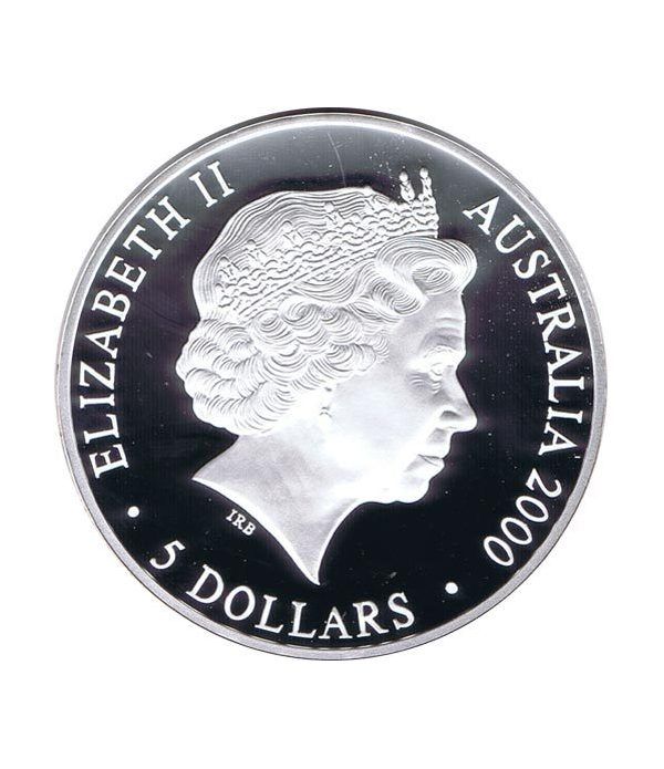 Moneda de 5$ de Australia, conmemorativa de los Juegos Olímpicos de Sydney del año 2000. Esta moneda cuenta con dos de los más famosos tesoros naturales de Australia - el lagarto cuello de Volante, en la típica pose agresiva y rodeandolo una corona de flores, brotes y hojas de guisante del Desierto de Sturt. Ambos se encuentran en el norte tropical de Australia.