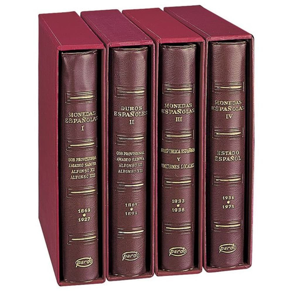 Album coleccion. Incluye Fundas grabadas en oro: la numeración, valor de la moneda, fecha de emisión y ceca correspondiente. Tomo I. Peseta Unidad Monetaria 1869-1927 Fundas nº 1 al 8. Color burdeos